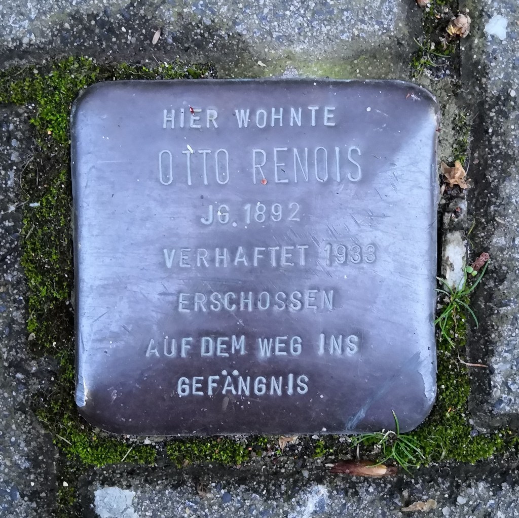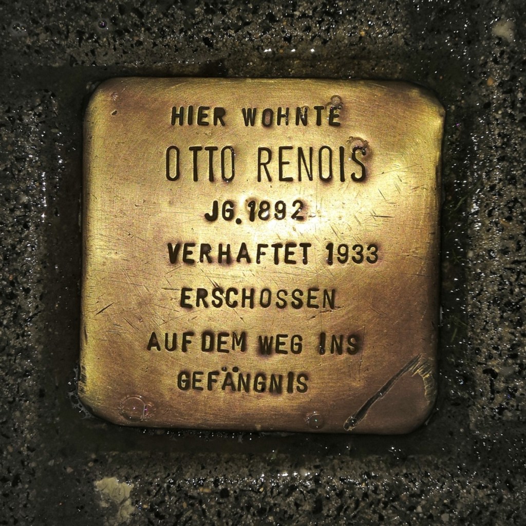 [2]Mit der Ersten Person Singular kommt hier eine literarische Erzählerfigur zu Wort. Aus Datenschutzgründen ist die Erzählung insoweit fiktionalisiert – statt dem auf Otto Renois verweisenden Stolperstein könnte man auch jeden anderen Stolperstein zum Ausgangspunkt nehmen.
