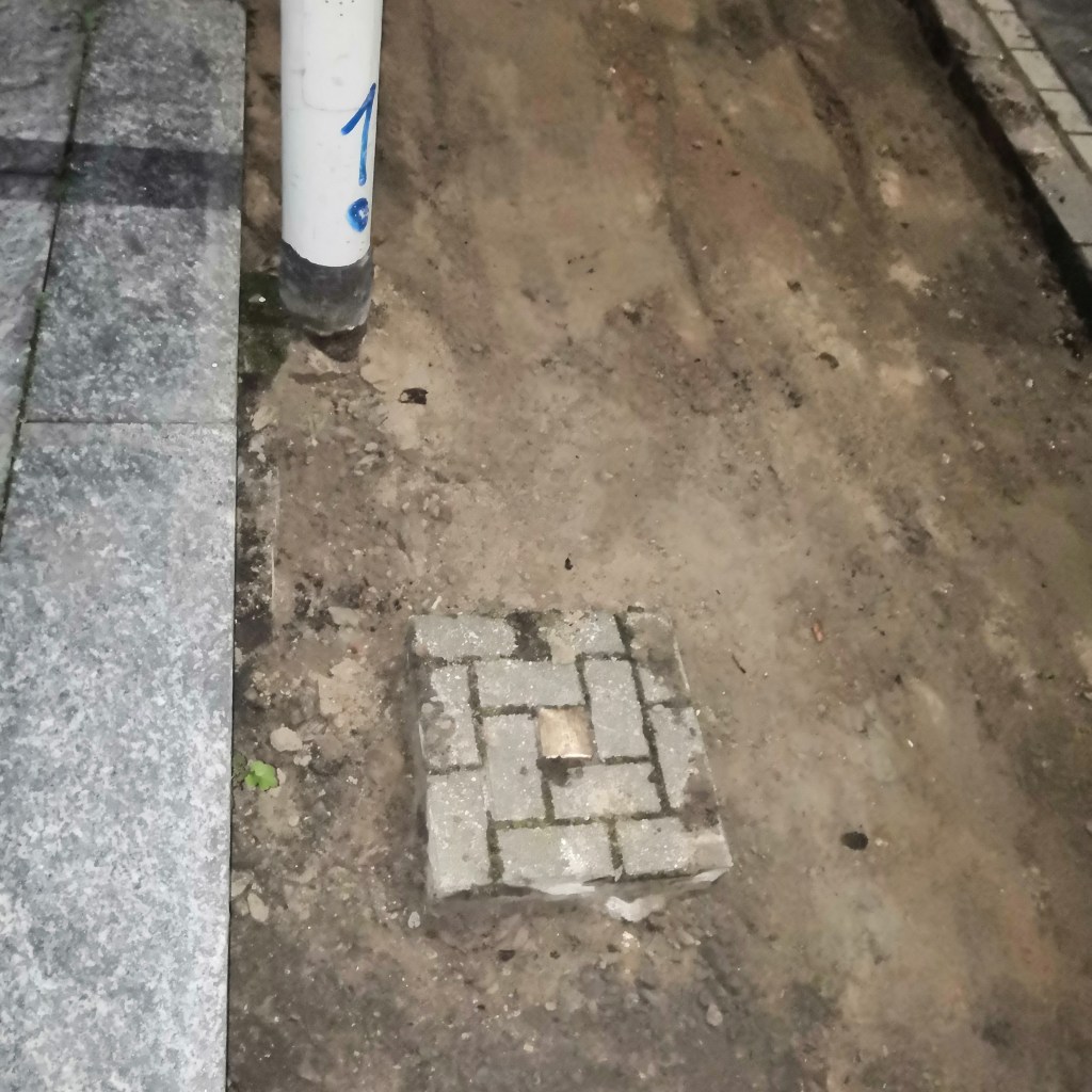 Wie auf dem mittleren Foto zu sehen ist, wurde der Stein mitsamt seiner von Gunter Demnig angebrachten Umrahmung bei Straßenarbeiten Ende 2019 trotz des größeren Aufwandes in seiner ursprünglichen Form belassen, anstatt ihn herauszunehmen und wie die umgebenden Platten neu zu verlegen. Auch wenn vielen dieses Vorgehen angesichts eines Denkmals selbstverständlich erscheinen wird, kann man den sorgfältigen Umgang mit Stolpersteinen als Geste des Respekts und als Anerkennung der Bedeutung dieser Form der Erinnerung deuten. Die finanzielle Mitwirkung an ihrer Verlegung und der ehrenamtliche Einsatz für ihren Erhalt durch viele Freiwillige spricht für einen hohen Grad an Akzeptanz in der Gesellschaft – auch, wenn es bundesweit leider immer wieder vereinzelt zu rechtsextrem motiviertem Vandalismusund Diebstahlkommt.[15]