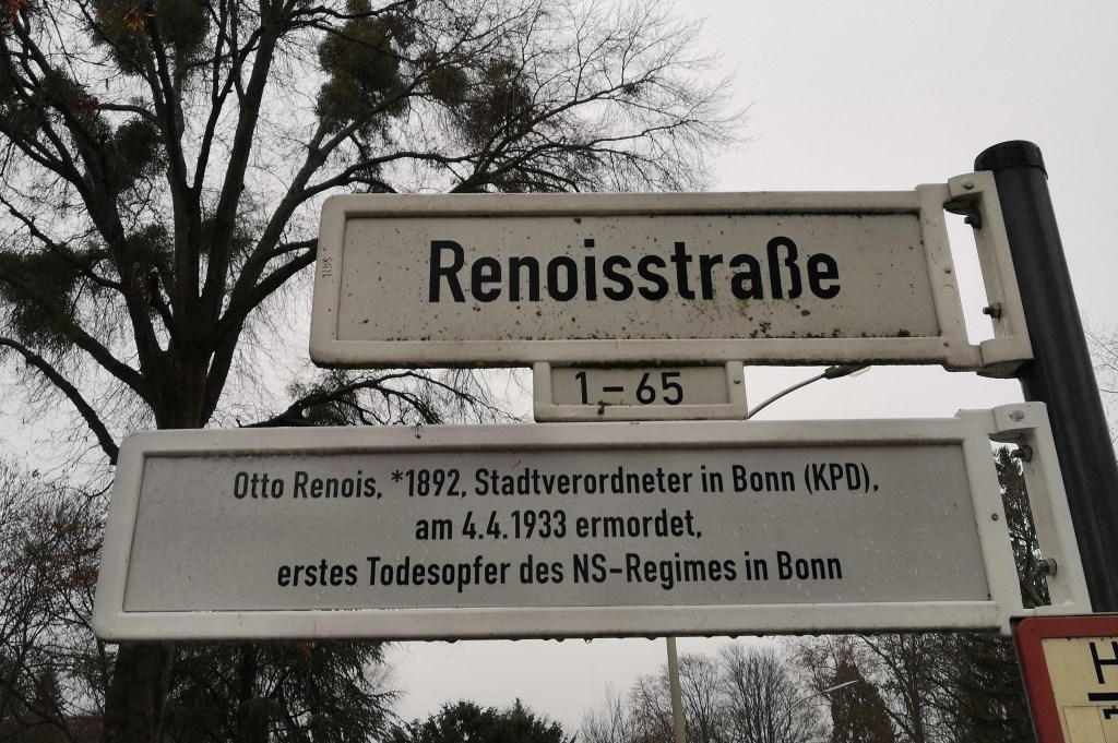 Auch an anderen Stellen ist die Erinnerung an Otto Renois in Bonn sichtbar. Im Jahr 1949 entschied der Stadtrat einstimmig, drei neu entstandene Straßen in der Reutersiedlung nach Gegnern des NS-Regimes zu benennen, darunter auch die Renoisstraße.