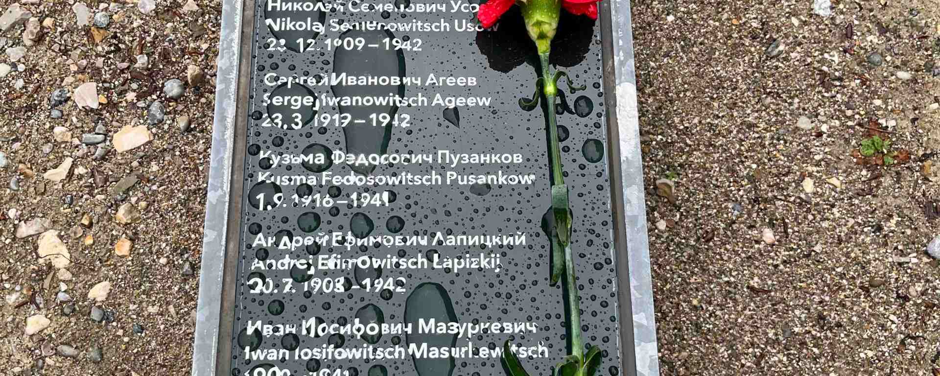 Diese Schmerzhaftigkeit der Erinnerung ist der Grund, warum es mit der Einrichtung der Gedenkstätte an solchen Orten wie hier so lange dauerte. Heute ist immer noch die Mehrzahl der Grabanlagen für sowjetische Opfer und ZwangsarbeiterInnen – wie auch der Lagerreste – mit Gras bewachsen, verwildert, am Rande der Städte und der gesellschaftlichen Wahrnehmung. Es waren zivilgesellschaftliche Initiativen, die gegen das Vergessen ankämpften und die Orte des Vergessens als Orte der politischen Gegenwartskritik, als Orte des Widerspruchs nutzten. In den 1990er Jahren konnte man zum ersten Mal die Stimmen der Opfer aus der ehemaligen Sowjetunion wahrnehmen, was zur Einsicht führte, dass die meisten Menschen zur Zwangsarbeit aus der Ukraine verschleppt wurden. Der Vermerk „besetzte Ostgebiete“ als Herkunftsort in den deutschen Arbeitsscheinen konnte von Historikern ausdifferenziert werden, auch wenn in der kollektiven Wahrnehmung eben vor allem Russland weiterhin als Referenz für den Krieg, seine Opfer und Sieger, blieb.