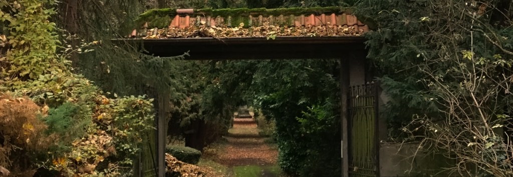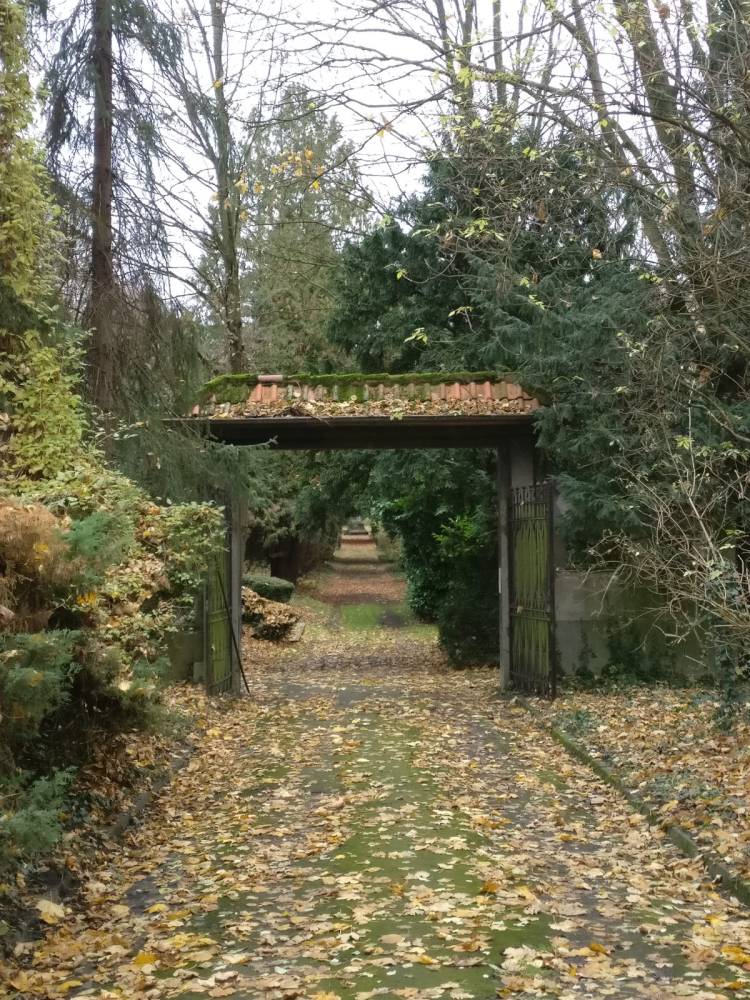 Der alte Friedhof wurde einschließlich einer 1982 abgerissenen Leichenhalle in den Jahren 1922/23 angelegt und ist somit nach der erfolgreichen Umsiedlung Knapsacks das letzte Zeugnis des untergegangen, von der Industrie geprägten Wohnortes. Er stellt vor allem wegen seiner Gestaltung und Blickführung des Hauptweges mit Hochkreuz und Baumallee eine besonders schöne gartenarchitektonische Anlage dar. 1978 beschloss der Hürther Gemeinderat den Friedhof als bleibende Gedenkstätte und Grünanlage dauerhaft zu erhalten. Seit 2003 steht er unter Denkmalschutz.3 Da der Friedhof sich unmittelbar an der Abbaukante der ehemaligen Braunkohlengrube Vereinigte Ville befindet, liegt er sehr versteckt und scheint zunächst kaum auffindbar. Es existiert keine Ausschilderung und keine direkte Anbindung mit öffentlichen Verkehrsmitteln, sodass man sowohl auf ein Auto als auch auf eine Leitung durch das Internet angewiesen ist. Laut Google Maps befindet sich die Anlage in der Friedhofstraße, jedoch ist diese ebenfalls nicht ausgeschildert, sodass der Ort leider nur aufzufinden ist, wenn man gezielt danach sucht. Neben der schweren Zugänglichkeit fällt der teilweise ungepflegte Zustand der Grabsteine auf. Zwar wird die Anlage offensichtlich von Gärtnern der Stadt Hürth gepflegt, jedoch sind nur noch wenige Grabstätten erkennbar: Viele wurden in den vergangenen Jahrzehnten von Pflanzen überwuchert und befinden sich außerhalb des Hauptweges.