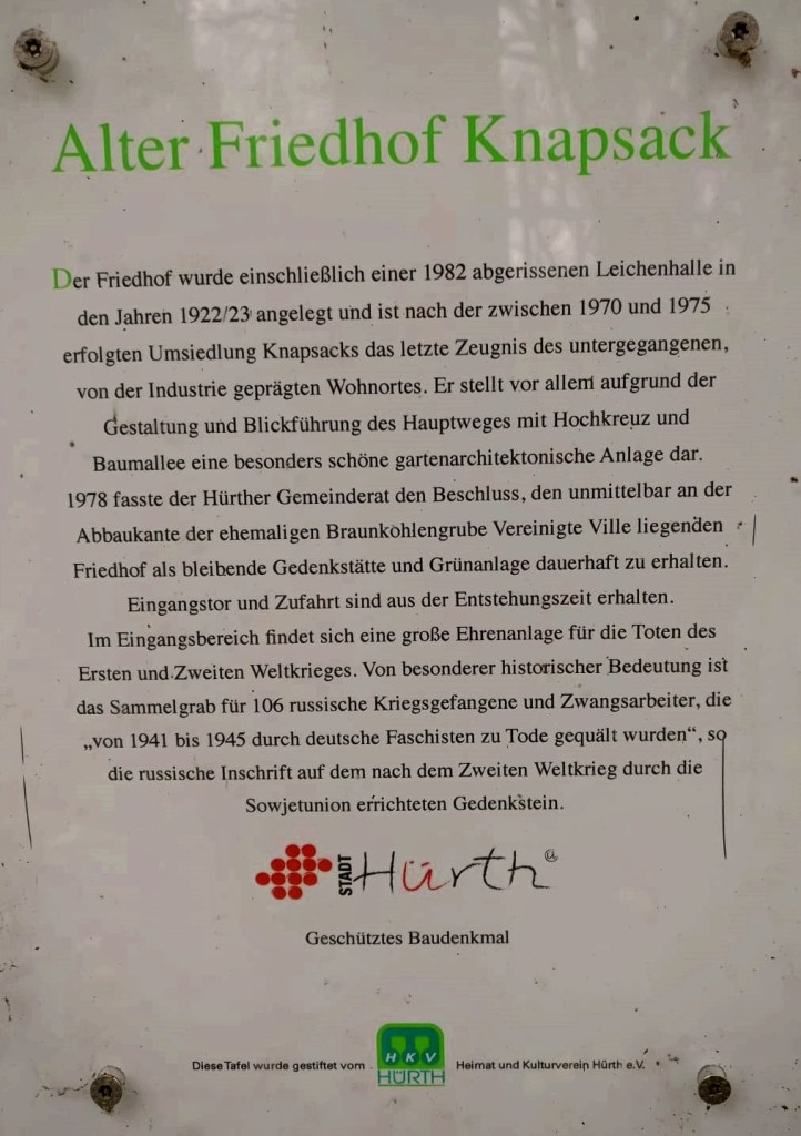 3 Vgl. Informationstafel am Eingangstor des alten Friedhofs Hürth-Knapsack.