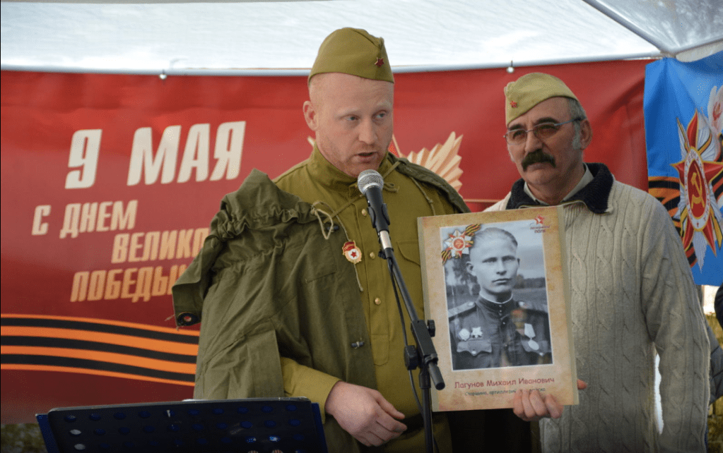 Mein Großvater war ein Soldat, er hat den ganzen Krieg vom Anfang bis zu Ende erlebt, ist 1945 bis nach Berlin gekommen. Für mich sind diese Erinnerungen heilig. Ich wurde mit den Idealen der Wertschätzung des Sieges erzogen: sowohl meine Schullehrer, als auch mein Großvater und meine Großmutter haben Patriotismus in mir geweckt. Alle meine Kinder (ich habe vier) besuchen die von uns organisierenden Feiertage und Veranstaltungen sehr gerne und respektieren das Thema des Krieges. Ich selbst nehme auch am Unsterblichen Regiment teil.3 Für mich hat es eine heilige Bedeutung. Als man mir vor fünf Jahren erzählte, dass es in der Nähe meines Hauses einen Friedhof mit sowjetischer Grabstätte gibt, sind wir mit meinem Mann sofort dorthin gefahren, haben die Grabsteine gereinigt und Blumen gepflanzt. Jetzt machen wir das jeden Frühling.
