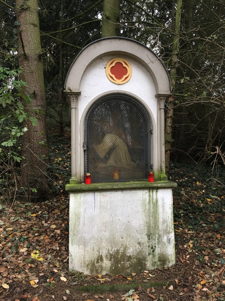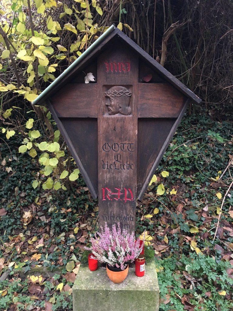 Diese Gedenktafel wurde am 8. November 1981 angebracht und in Anwesenheit des damaligen Bürgermeisters, Hans Daniels, und jüdischen Überlebenden enthüllt.14 2000 wurde das Kloster aufgrund von mangelndem Nachwuchs aufgelöst, heute befindet sich dort das Priesterseminar Redemptoris Mater. Nach vielen Jahren war die Gedenktafel in einem schlechten, ungepflegten Zustand und benötigte eine Restaurierung. Da sich lange Zeit niemand fand, der dieses Vorhaben finanzieren wollte, übernahm die SPD Endenich-Weststadt die Kosten und weihte die Tafel an Allerheiligen 2016 ein.15 Neben der Gedenktafel an die jüdischen Opfer befindet sich eine weitere Tafel, die den Benediktinerinnen gewidmet ist. Dort stehen der Name des Klosters und die Jahreszahlen 1888-2000; die Zeit, in der das Kloster bestand. An der Marterkapelle befindet sich zudem ein Aushang mit dem Titel „Kurze Geschichte der Marterkapelle“, welcher die Entstehungsgeschichte der Marterkapelle und des Klosters erzählt.