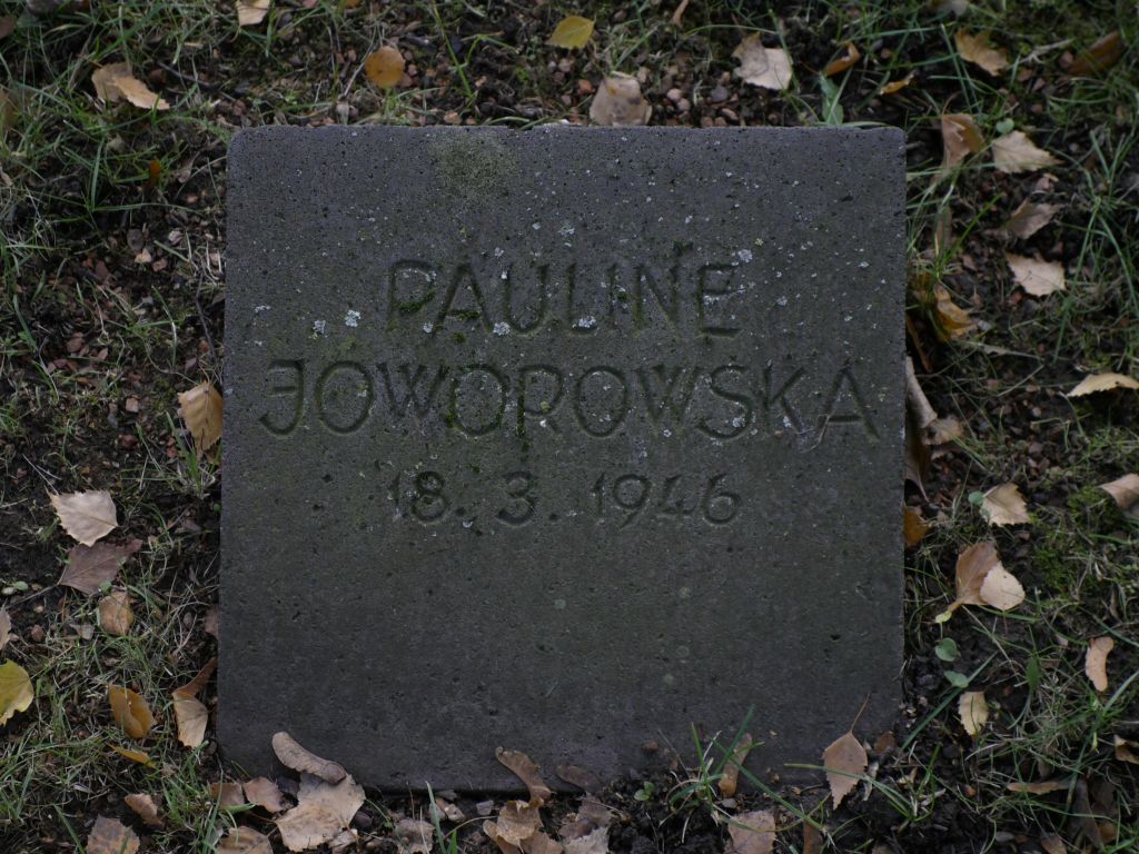 JAWOROWSKA, Pauline:Über sie konnte lediglich festgestellt werden, dass die Schreibweise ihres Namens auf der Grabplatte (Pauline Ɉoworowska) sich ein wenig von der in den Listen vom Friedhofsamt und im Aufsatz von Hesse und Purpus unterscheidet. Dort wird sie als Pauline Jaworowska verzeichnet.