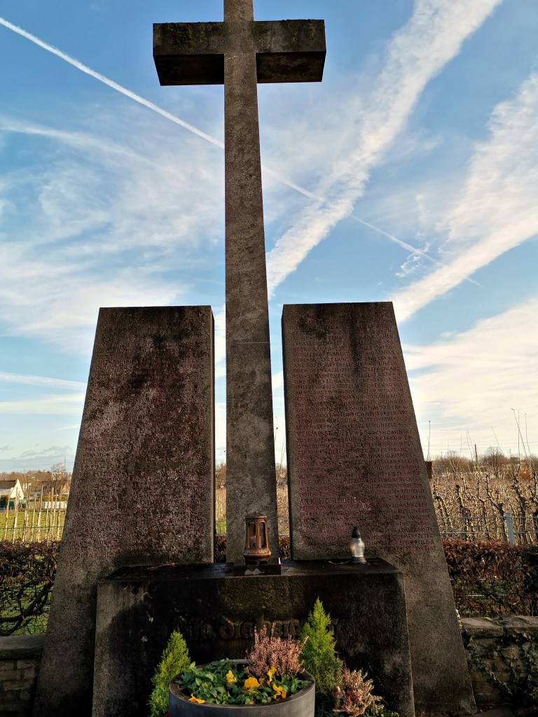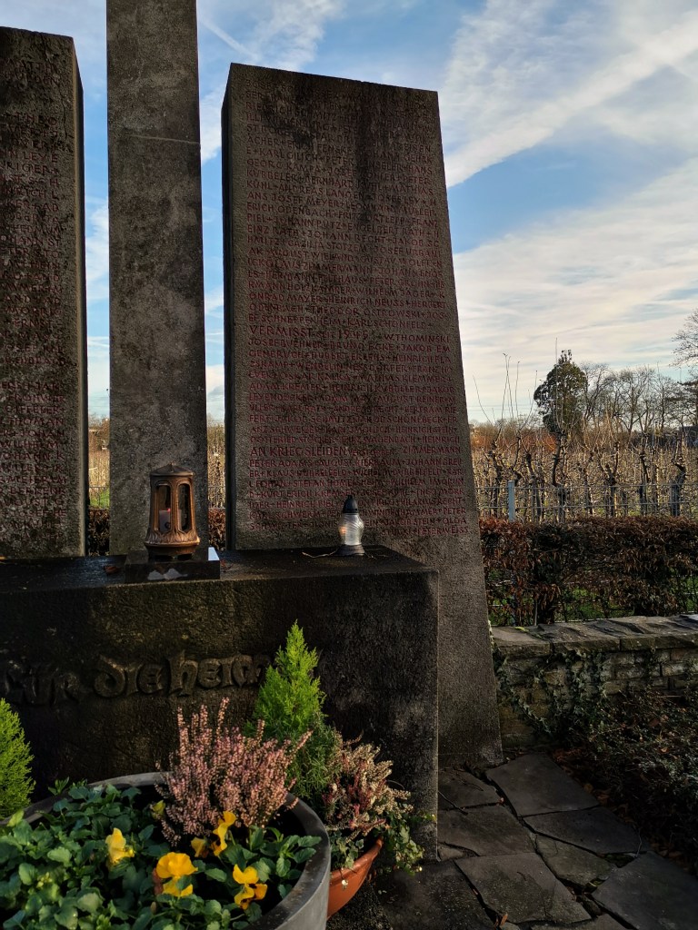 Auf dem Friedhof der katholischen Pfarrkirche „Schmerzhafte Mutter“ in Wesseling befindet sich das Grabmal dreier sowjetischer Zwangsarbeiter.