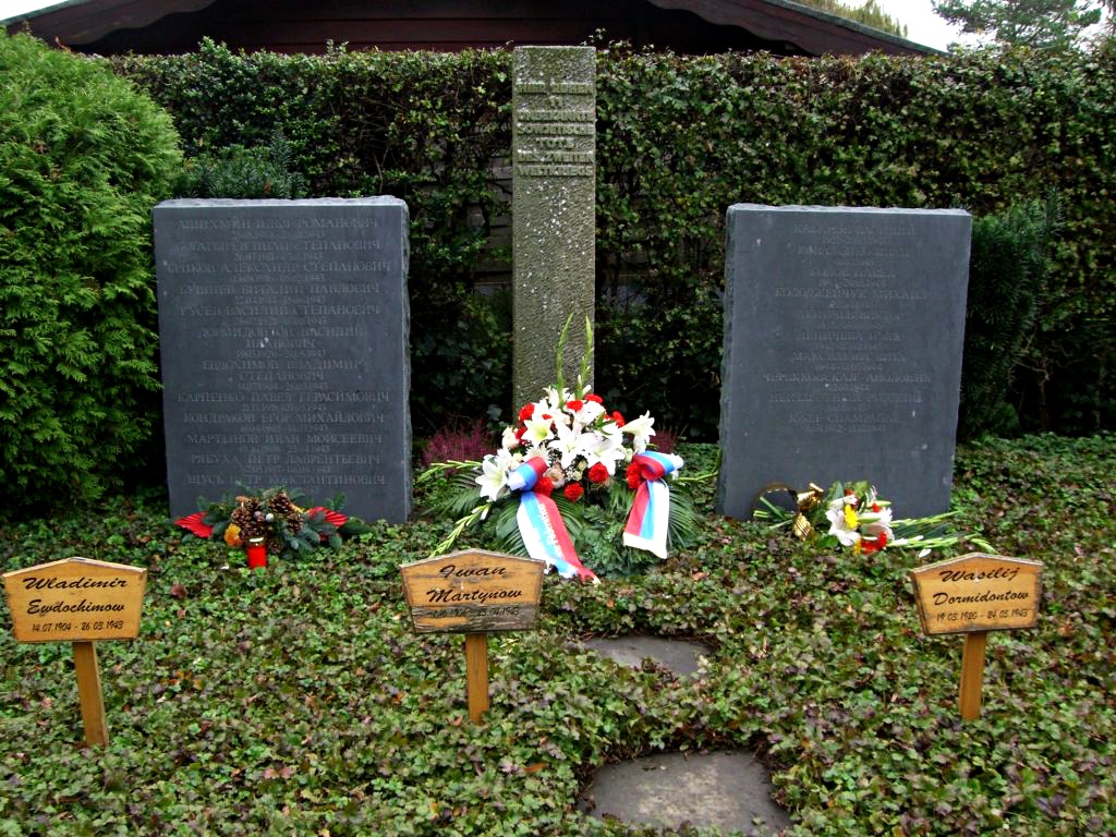 In den 1970er Jahren wurde am Rande des Friedhofs eine kleine Säule mit der Inschrift „Hier ruhen 11 unbekannte sowjetische Bürger“ aufgestellt. „Ich habe mich gefragt, woher diese Informationen stammen. Ich habe angefangen, die Einheimischen zu befragen, aber niemand konnte meine Fragen beantworten. Deshalb habe ich mich entschlossen, selbst nach Namen zu suchen “, erinnert sich der Forscher. „Nachdem ich mich an das Stadtarchiv Dortmund und das russischsprachige elektronische Archiv OBD-Memorial2 gewandt hatte, ist es mir gelungen, Dokumente über 12 Personen zu finden. Es geht um 12 sowjetische Kriegsgefangenen, die 1943 in Derne starben. Die Todesursachen waren unterschiedlich: Einige starben an Hunger und Krankheiten, vor allem Tuberkulose, einige starben nach einem Unfall in der Mine und der Rest – eines gewaltsamen Todes (entweder „Genickbruch“ (das bedeutete Erhängen) oder sie wurden auf der Flucht erschossen). Die weiteren Recherchen in den Archiven der Krankenhäuser und der katholischen Gemeinde St. Aloisius bestätigten, dass auf diesem Friedhof Bestattungen von Sowjetbürgern bis 1945 stattfanden. So wurde mit der Hilfe des katholischen Pfarrers in Derne noch neun „Russen“ gefunden, darunter vier Kinder. Jetzt gibt es an diesem Ort zwei neue Grabsäulen, die nach ihrer Aufstellung durch den Bezirksbürgermeister von Scharnhorst eingeweiht wurden.“